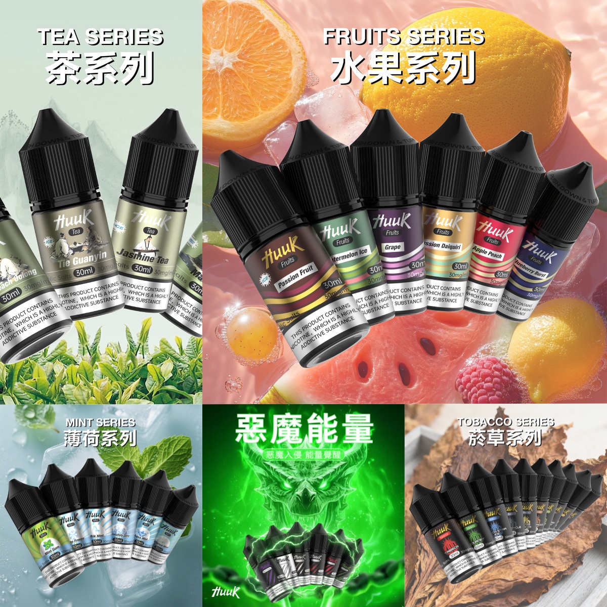 水果、薄荷、煙草、茶系、能量飲料五大方向齊全。