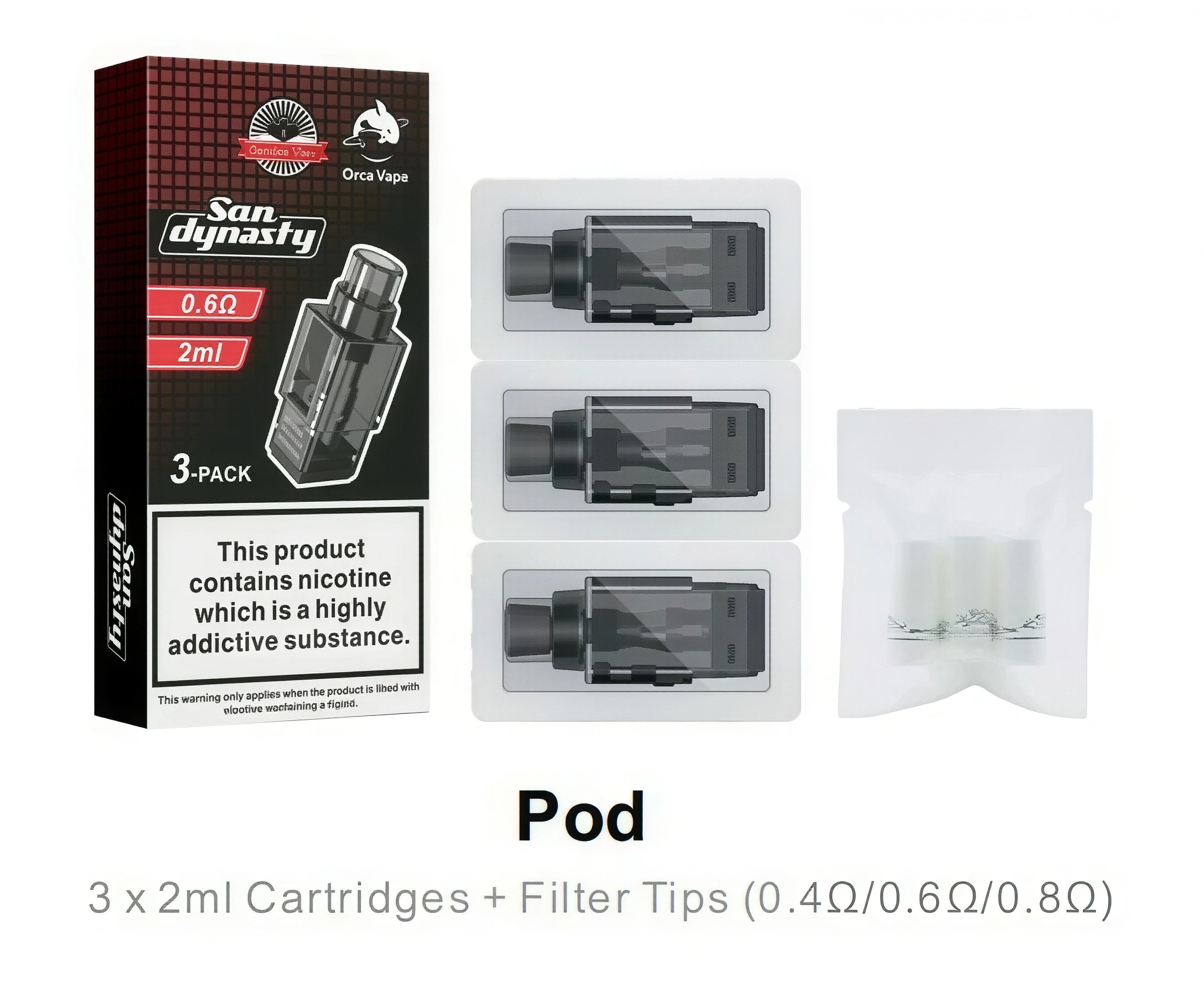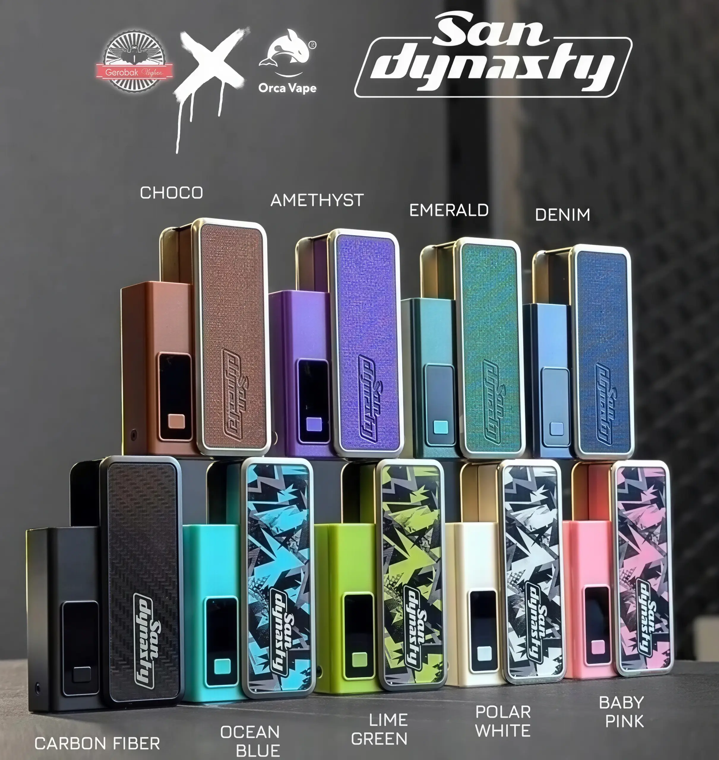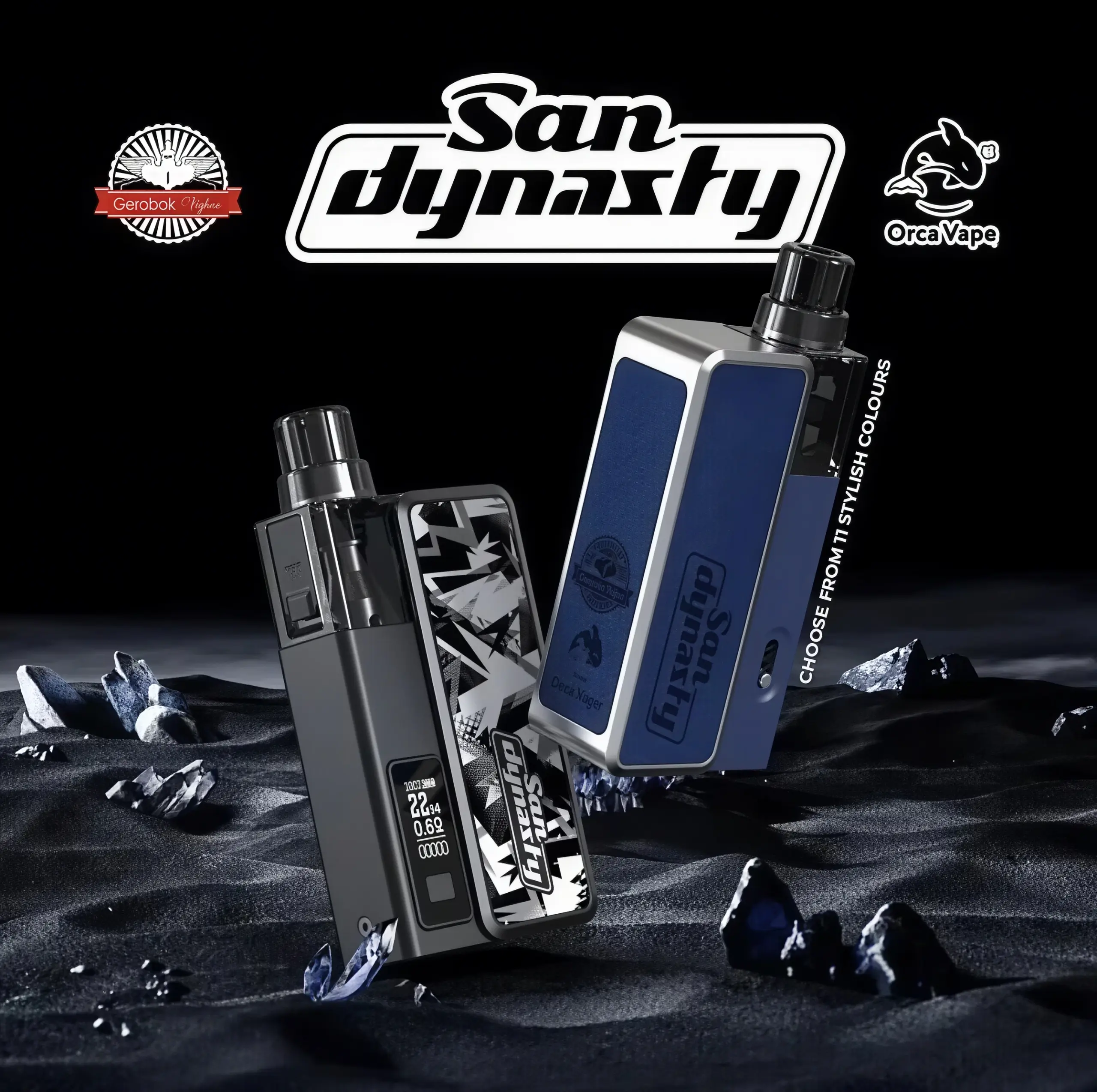 San Dynasty 小海豚主機 搭載30W輸出、可更換14500電池與可調氣流設計,支援2ml 0.4/0.6/0.8Ω空倉與50/50鹽油,擊喉感穩定順滑,小巧便攜日常首選。立即入手升級體驗!