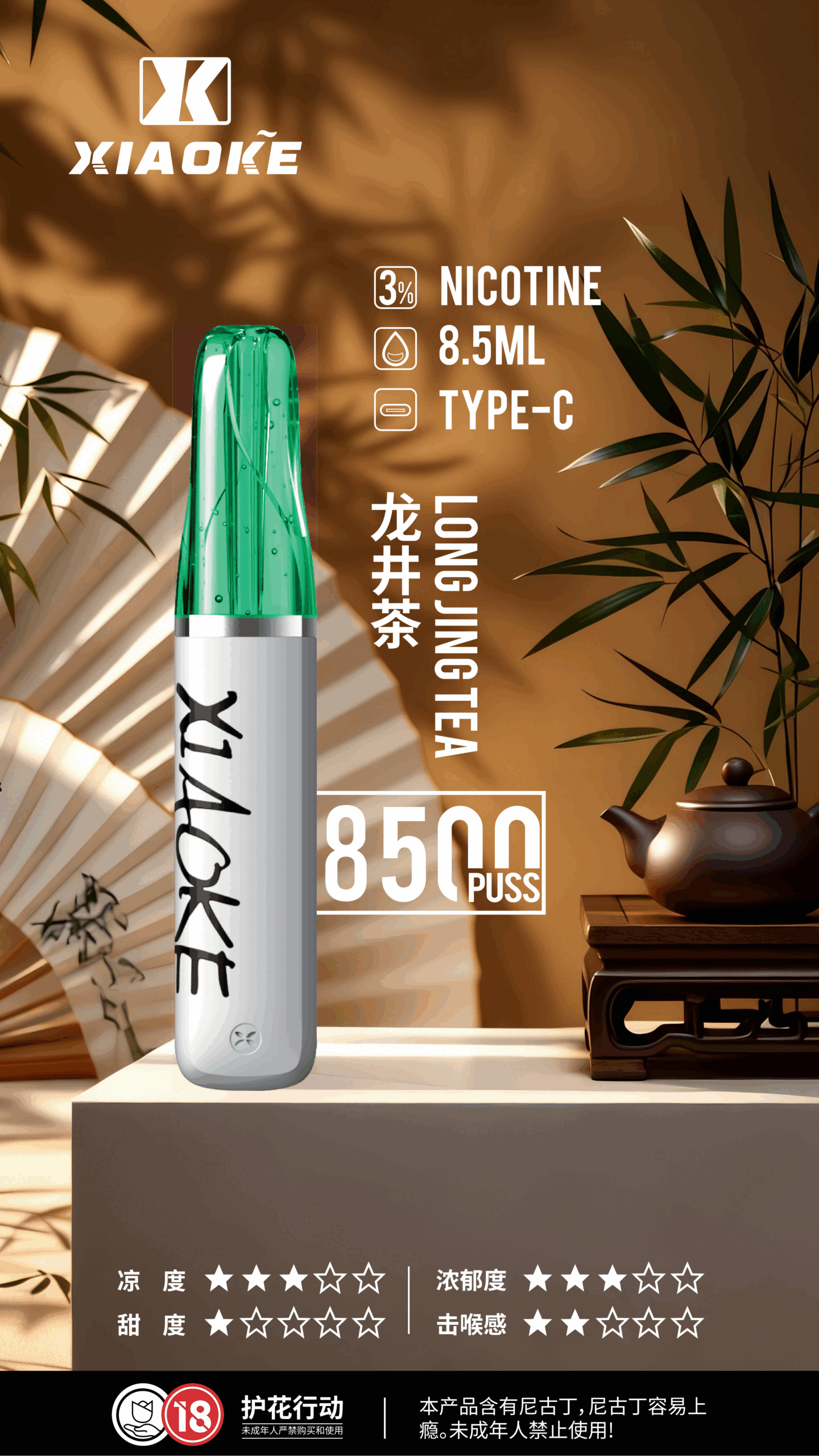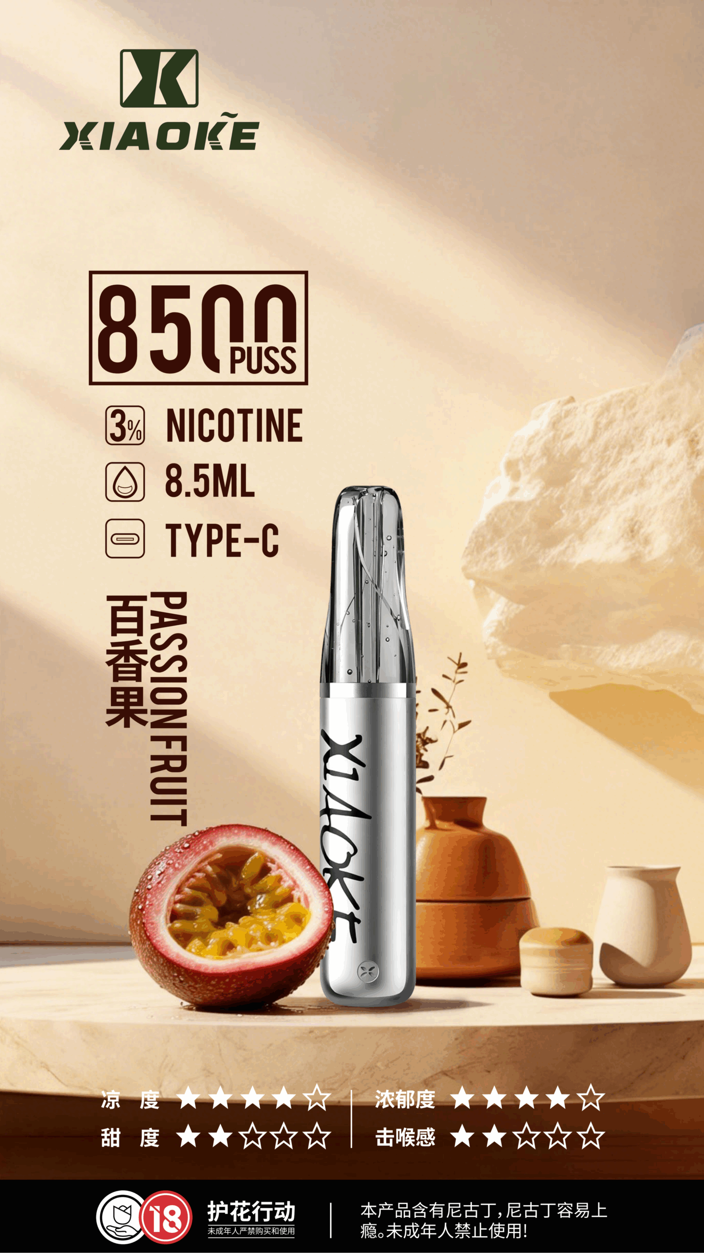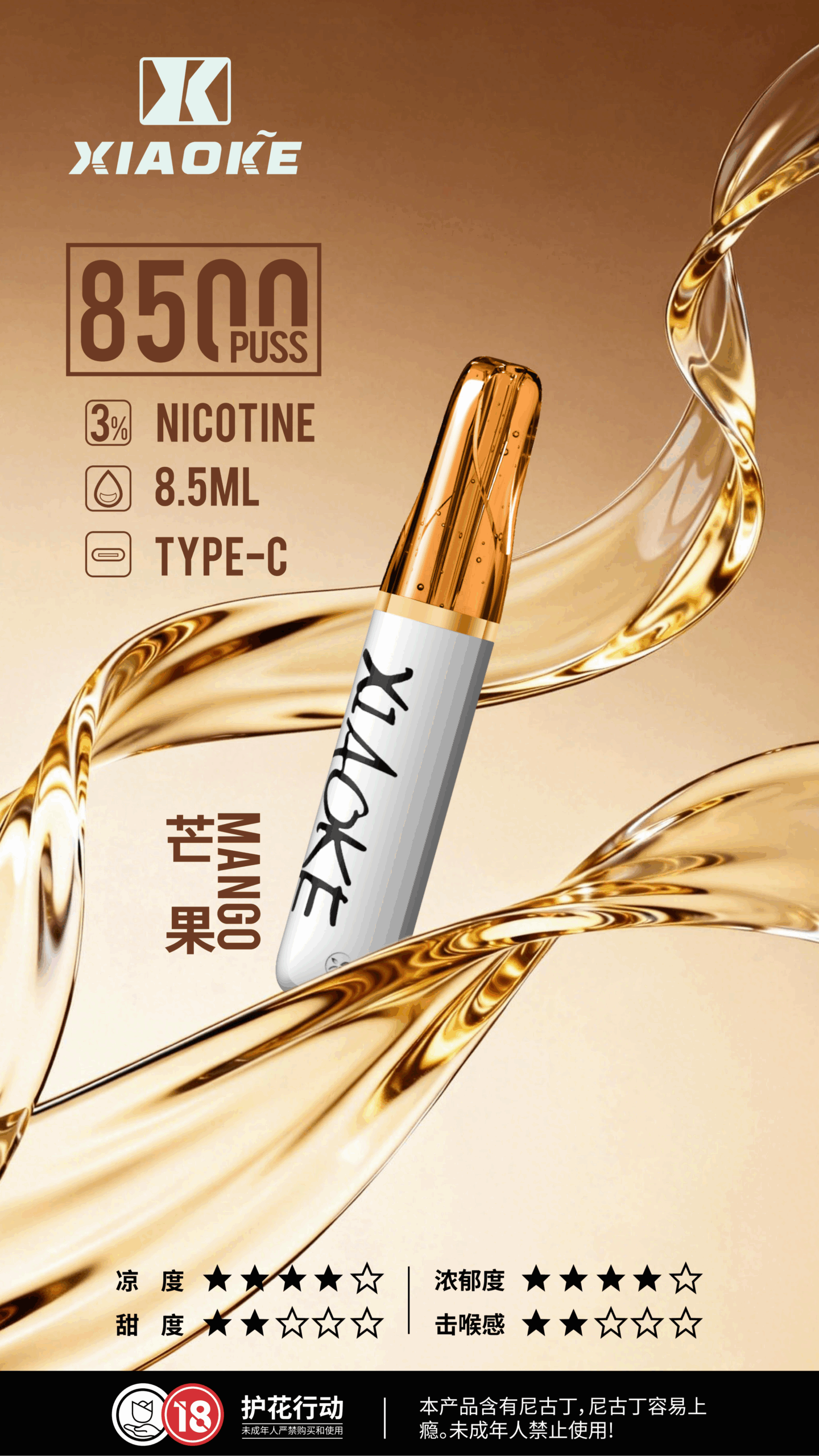 XiaoKe梟客 8500口一次性電子菸|8.5ml大容量 × Type-C快充 × 口紅造型